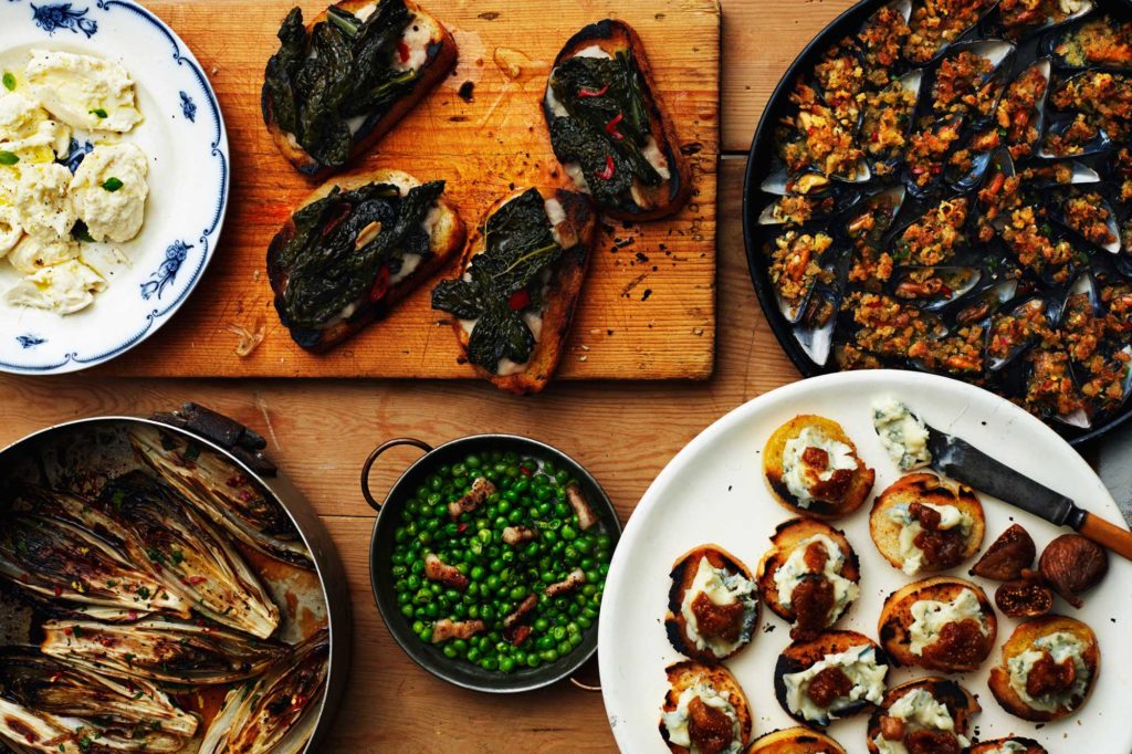 Vi samlas och gör er hemmastadda med lite gott plock, t ex Bruschetta med dagsaktuellt tillbehör, lite starkt, lite sött och bröd att doppa i underbar olivolja.